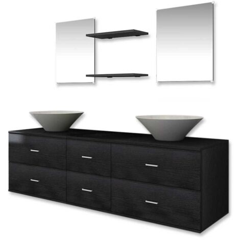 - Ensemble Complet Meuble De Salle De Bain Noir Vasques Doubles