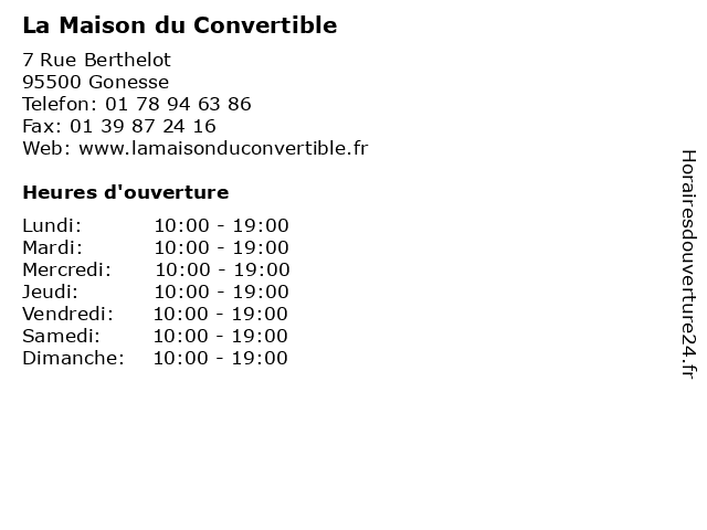 - Á La Maison Du Convertible Horaires D Ouverture 7 Rue Berthelot A Gonesse